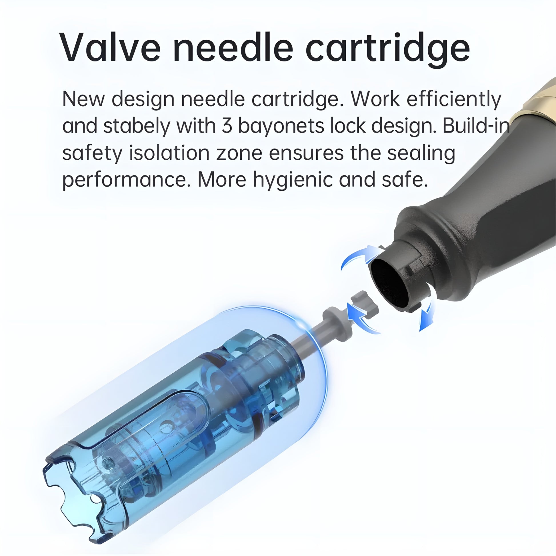 - Its 3-slot connector improves serum distribution and maintains a secure attachment throughout use. Each cartridge includes an anti-backflow silicone membrane to uphold top hygiene standards.