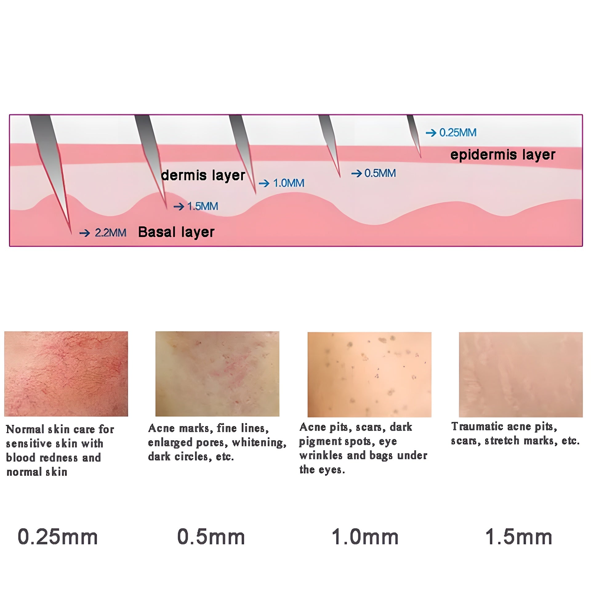 1、0.5mm-wrinkle removal, whitening, freckle recommended 0.25mm.