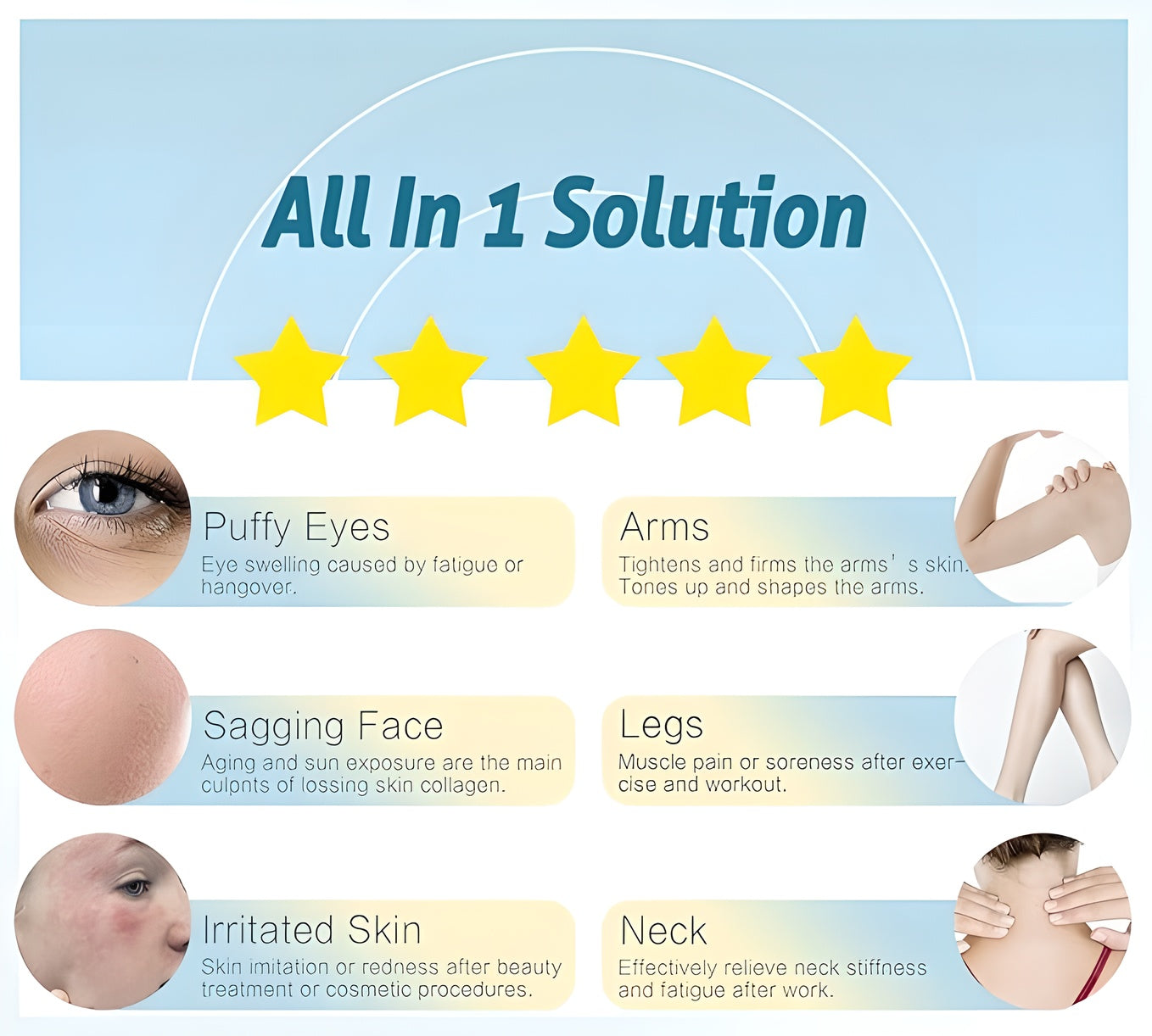 Ice Roller Massager for Face Eye Body Massage Cooling Therapy Cool Roller Skin Tightening Skin Care - Reduces muscle tension and spasm around eyes, face and jaw. - Shrink pores and clam skin - Relieve tired eyes - Relieves facial fatigue. - Relieves pain and redness - Eliminates facial dropsy. - Shrink pores and clam skin
